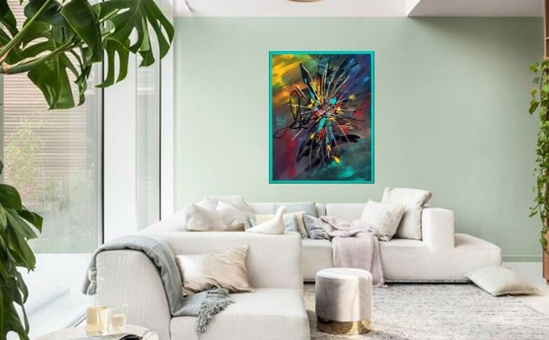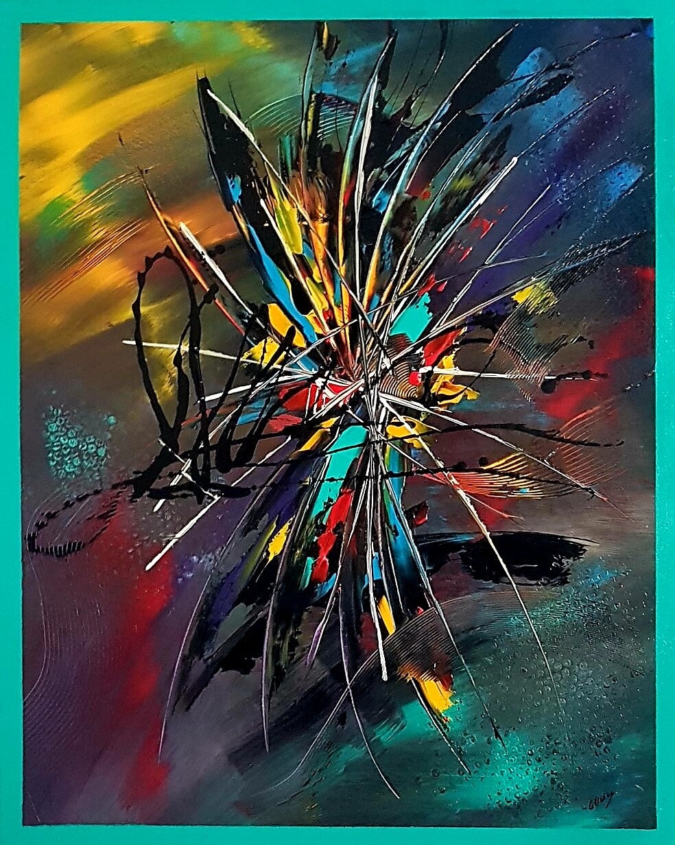 Ce tableau abstrait coloré FAVONIUS est une œuvre originale de l’Artiste Olivier Art Abstrait peinte à la main.