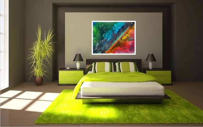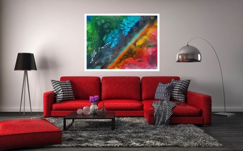 Ce tableau abstrait coloré YSUN est une œuvre originale de l’Artiste Olivier Art Abstrait peinte à la main.
